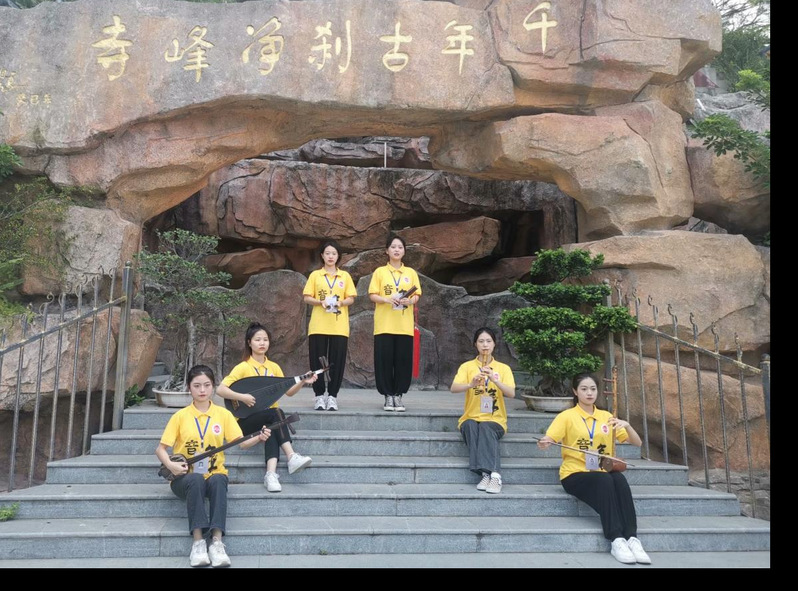 随后,实践队到位于净峰寺的惠安县老年大学艺术团净峰实践基地与艺术团的南音爱好者一起交流、会演,新一代的南音传承者和老先生们一起唱响了《望明月》、《鱼沉雁杳》等南音名曲,千年古刹奏响千年雅乐,平添了一份优雅之美。实践队还在景区开展了一场别开生面的南音公益快闪,听到悠扬美妙的南音,见到如此和谐雅致的场景,过往行人无不驻足聆听,南音的推广在此地更显庄重绵长。