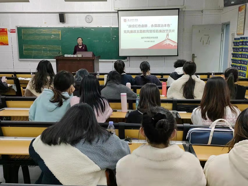 为进一步筑牢党员干部拒腐防变思想防线,切实增强宗旨意识和廉洁自律意识,12月2日,音乐与舞蹈学院组织学院全体师生党员、党支部纪检委员、发展对象和入党积极分子在艺术楼E101教室集中观看了党风廉政纪录片《叩问初心-信仰之失》。学院党委副书记兼纪委书记胡秋娇主持观看并讲话。