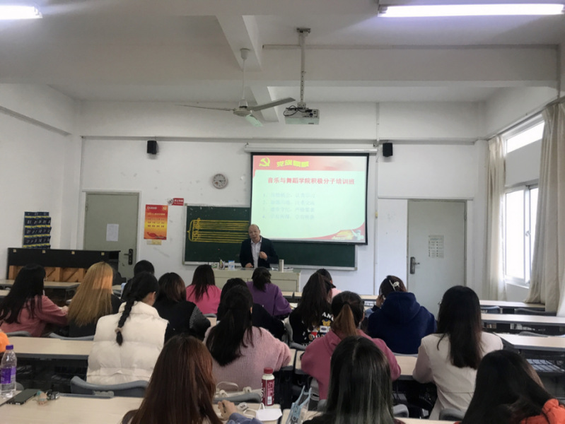 11月11日下午,音乐与舞蹈学院于艺术楼C309教室举行第14期入党积极分子培训班,我院党委书记苏国柱为学员讲授题为《端正入党动机,积极向党组织靠拢》党课。