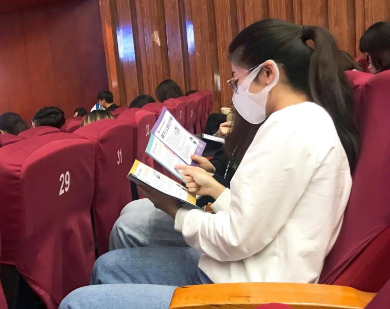 会议现场,驻校民警和保卫处工作人员分发了防范电信网络诈骗宣传材料,引导学生下载国家反诈中心APP、注册“金钟罩”预警小程序等。