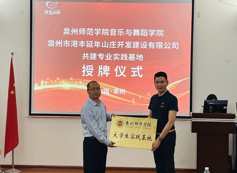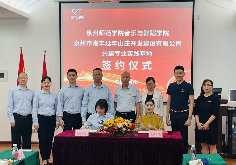 为进一步贯彻落实访企拓岗促就业专项行动有关通知要求,2022年6月9日,音乐与舞蹈学院与泉州市港丰延年山庄开发建设有限公司在延年山庄会议厅举行“大学生专业实践基地”签约授牌仪式,音乐与舞蹈学院院长王丹丹、党委书记苏国柱、党委副书记兼纪委书记胡秋娇、副院长翁世晖及学院相关老师,延年山庄总经理陈桂凤及管理团队出席仪式。