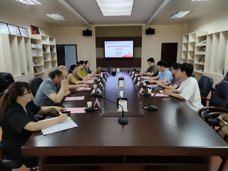 7月29日,三明学院教育与音乐学院党委书记伍荣生一行来院交流座谈,探讨一流学科建设、一流专业建设、实验室建设及专业认证等工作,院长王丹丹,党委书记苏国柱,副院长吴少静,音乐学专业主任黄雪生、副主任林静,教学科研办主任封辉出席交流会。