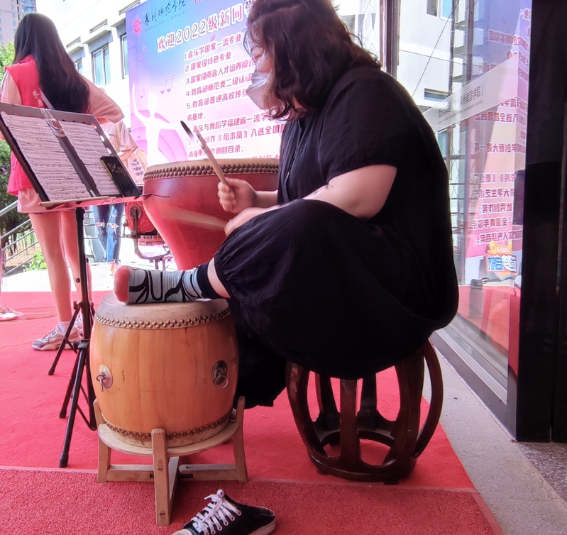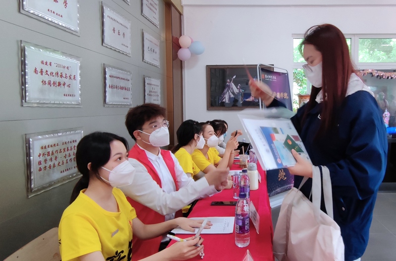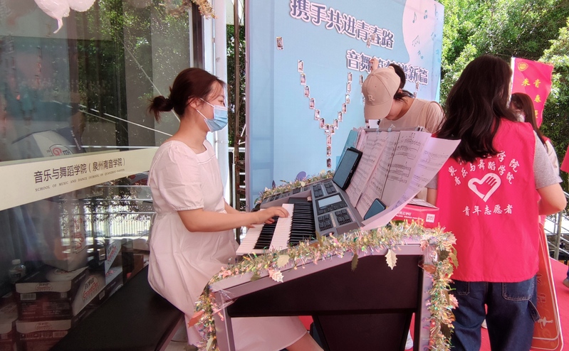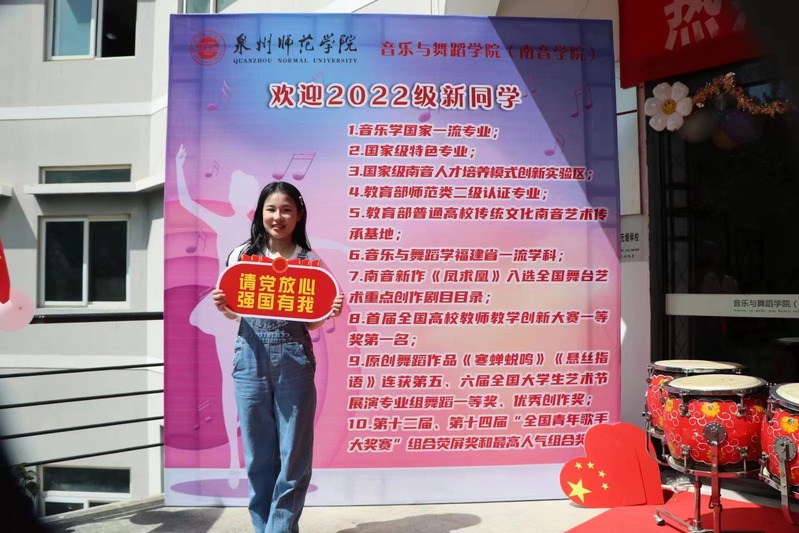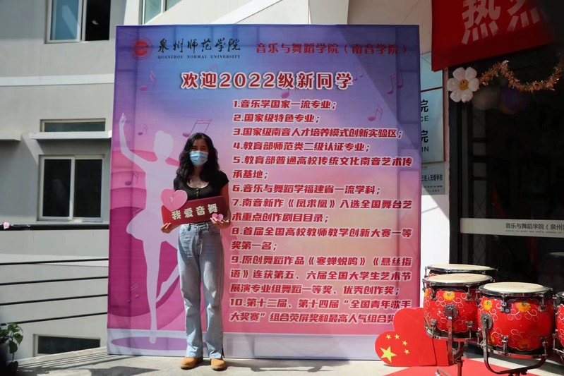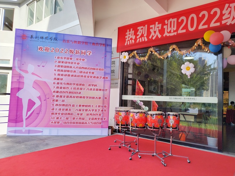 在艺术楼二楼门厅的表演区,分别有同学表演双排键及压脚鼓,南音系的同学们抒情弹奏”三千两金“等南音经典曲目,通过丰富多彩、富含特色的活动,让新生感受到学院的热情,增强了他们的归属感和认同感。