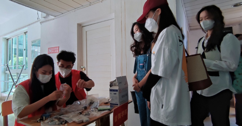 我院青年志愿者主动地为新生进行“一对一”服务,引导新生及时落实“即到即检”、帮助新生提拿行李等,为新生留下了大学第一天的“最美照片”。