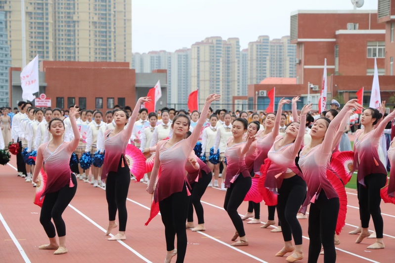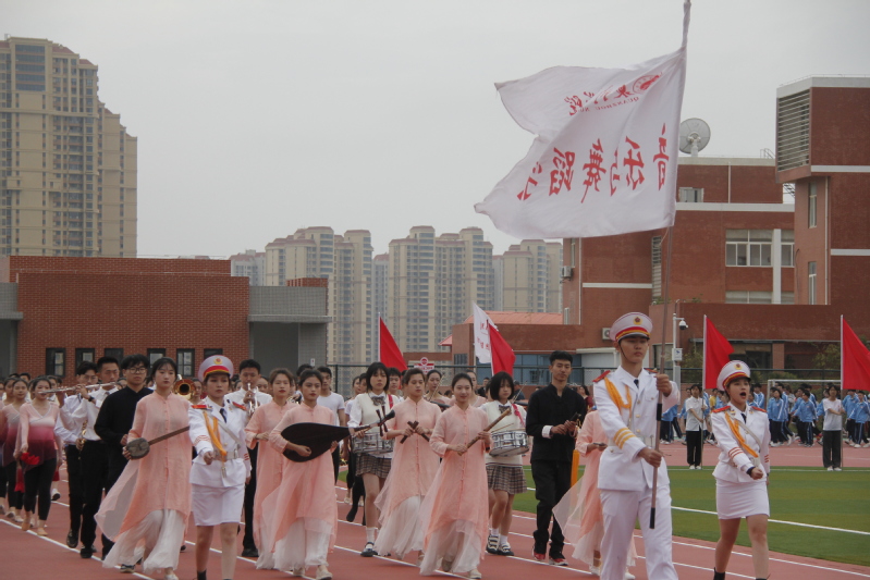 经过一个多月的训练,音舞行进方阵、广播操方阵的学子们以良好的精神面貌和熟练的动作漂亮地完成了入场仪式。
