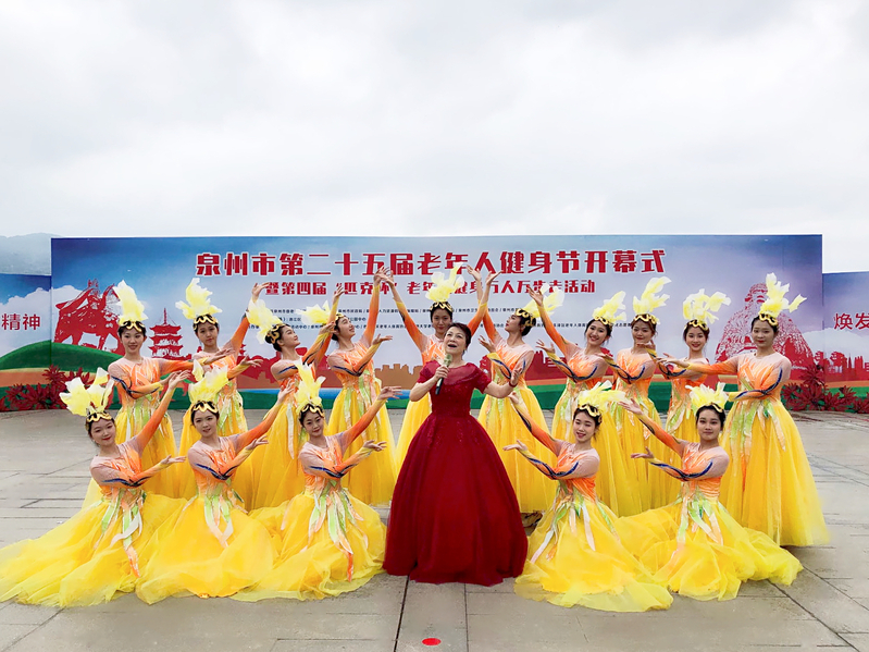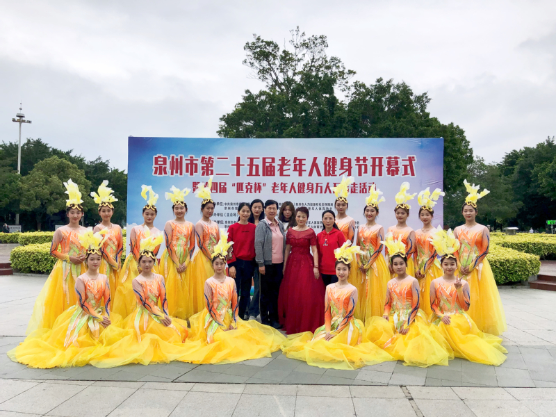 泉州市体育局联合市委老干部局、民政局、人社局、城管局、卫健委、老体协于2023年 4 月26日上午在市西湖公园共同举办泉州市第二十五届老年人健身节开幕式暨第四届“匹克杯”老年人健身万人万步走活动,福建省人大常委会原副主任、省老年人体育协会主席王美香亲临现场并宣布开幕。学校离退处委托音乐与舞蹈学院排演节目《祖国之恋》参加开幕式演出。该节目由音乐与舞蹈学院退休老师吴秋红独唱,陈忍老师指导舞蹈表演,2021级舞蹈编导方向研究生创排,2021、2022级舞蹈学专业本科的16位同学参与演出。开幕式在欢快的气氛中圆满结束,开云师生表演的节目《祖国之恋》获得主办方与观众的一致好评。