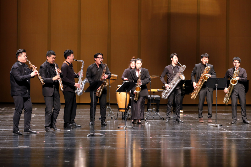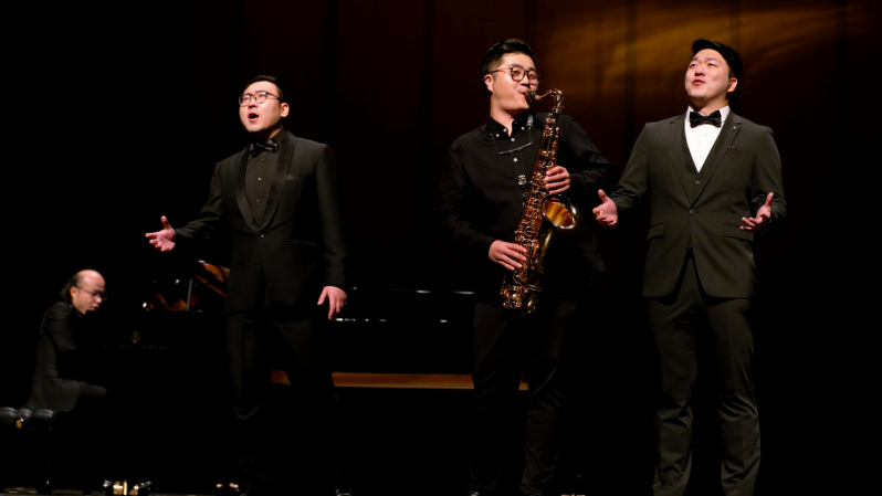 上半场,男声合唱团在黄斌的指挥下演唱了《大江东去》,笛箫乐团演奏了《喜相逢》,开云和来自省内其他高校的老师们演奏、演唱了《情热大陆》《弄臣》《中国花鼓》《海滨音诗》《饮酒歌》《B大调第一号钢琴三重奏Op.8,第一乐章》等6首曲目,乐曲涵盖了不同时期、不同民族文化的中外经典旋律,既有对真诚爱情的渴望和赞美,充满青春的活力,也有对豪迈的理想和似大海般坦荡宽广的胸怀情感的真挚表达。