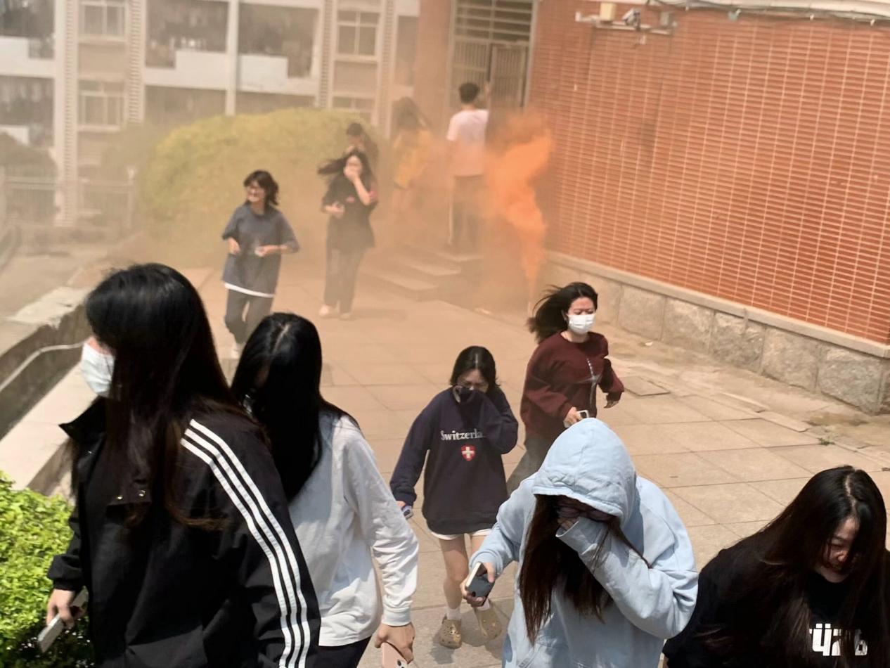 下午1:20,演练正式开始。“模拟烟雾”的迅速扩散,急促的口哨声将全体学生代入了模拟宿舍楼发生火灾的情境中。全体学生在辅导员老师的组织下,在最短的时间内有序、快速地逃离至应急疏散集合地点。演练结束后,辅导员老师对整个疏散过程做了详细的总结,并就火灾预防、火场自救等消防安全基本常识对学生们进行详细讲解。