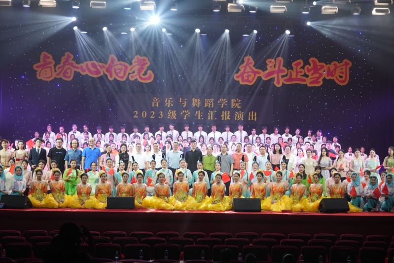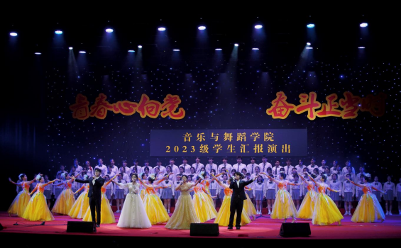 汇报演出以“青春心向党•奋斗正当时”为主题,分为“青春为马,共赴韶华”“不负重托,砥砺前行”两个篇章展现,汇集了我院2023级本硕学生声乐、器乐、舞蹈、歌剧、合唱等节目,以高雅艺术表达青春热爱,用热忱之情奏响奋斗之歌,极大鼓舞了在场师生牢记使命,砥砺前行。