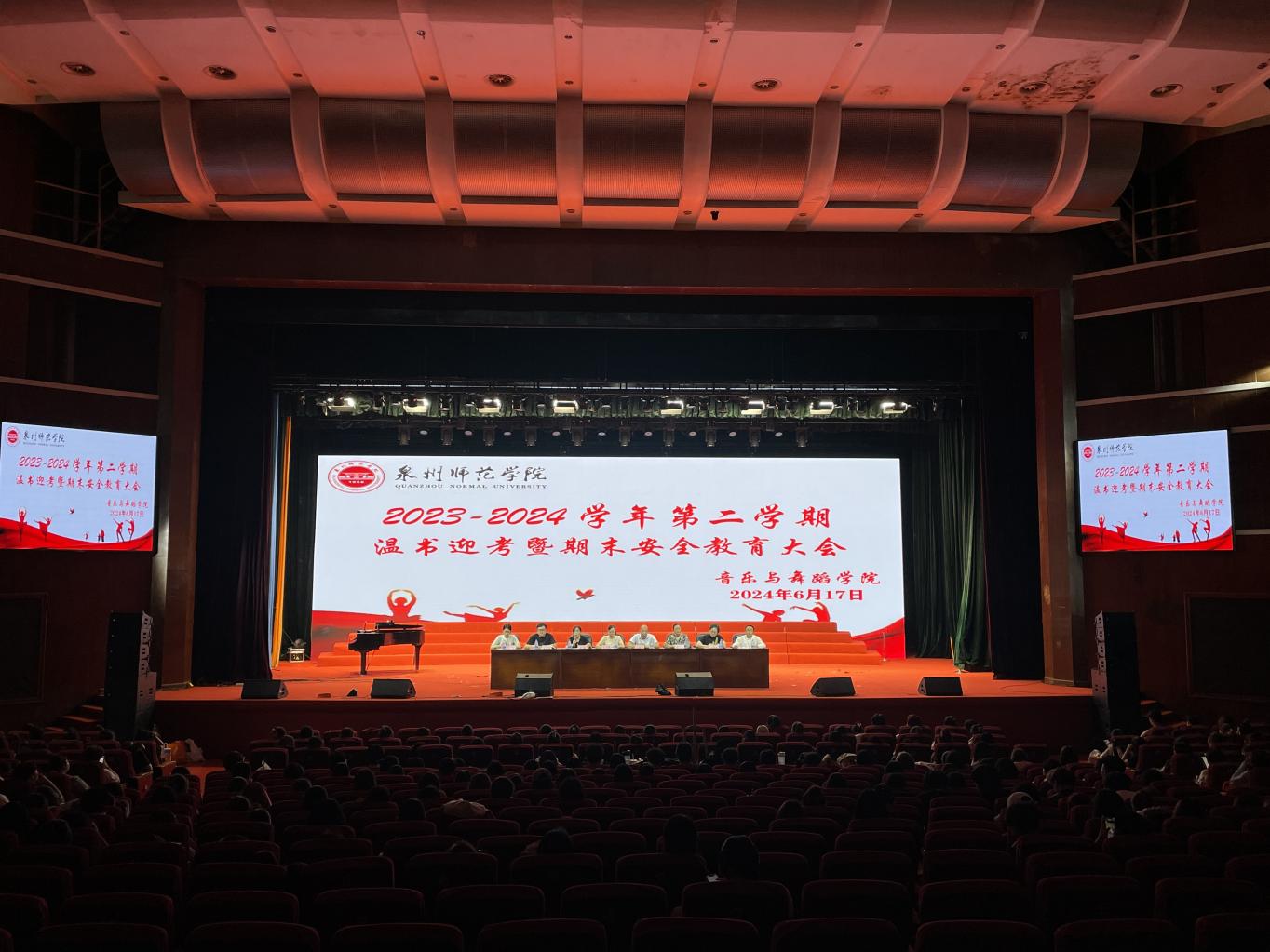 6月17日,音乐与舞蹈学院在陈祖昌大礼堂召开2023-2024学年第二学期温书迎考暨安全教育大会。党委书记苏国柱,党委副书记兼纪委书记胡秋娇,副院长吴少静,教科科研办、学工办负责人,全体辅导员以及全院非毕业班本科生、研究生参加此次会议。会议由胡秋娇主持。