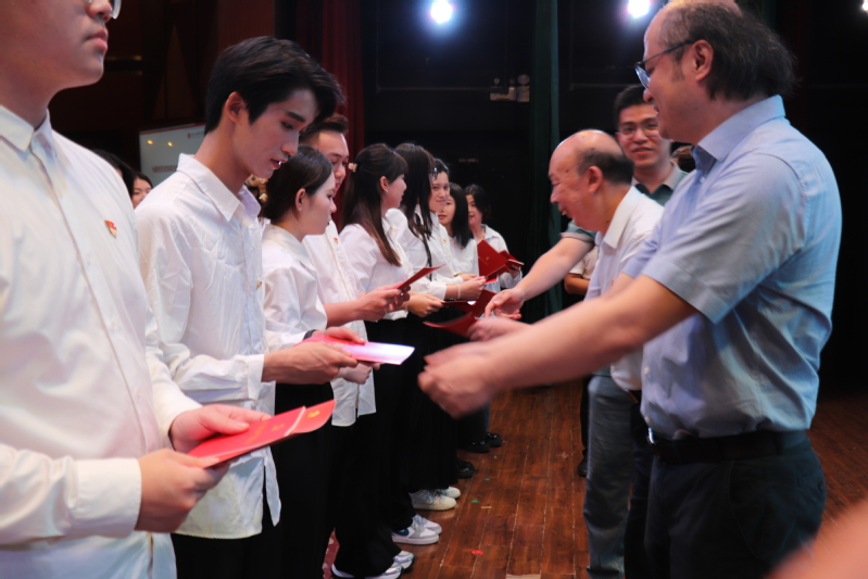 学院党委委员、党支部书记向每位新党员佩戴党员徽章、赠送党员政治生日贺卡和党章。