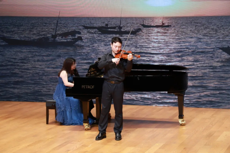 签约仪式后,学院师生们用一场高水平的演出展示了学院在艺术实践教学方面的卓越成果。学院青年教师郝雨博士的女声独唱《玫瑰三愿》深情动人,顾成博士的小提琴独奏《丰收渔歌》技艺精湛,南音专业师生带来的2023年央视春晚节目《百鸟归巢》更是赢得了观众的热烈掌声。