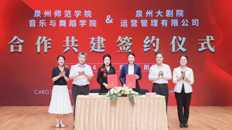 6月21日,开云kaiyun官网与中国对外文化集团战略合作、音乐与舞蹈学院与泉州大剧院合作共建签约仪式在泉州大剧院举行。中国对外文化集团党委书记、董事长李金生,校长陈昌萍,副校长陈秋燕,中演演出院线发展有限责任公司副总经理周青青,音乐与舞蹈学院院长、党委副书记陈恩慧,泉州大剧院运营管理有限公司董事、副总经理陈巧瑜,泉州大剧院运营管理有限公司党支部书记、副总经理许琼芸,学校各职能部门及学院相关专业负责人出席了签约仪式。