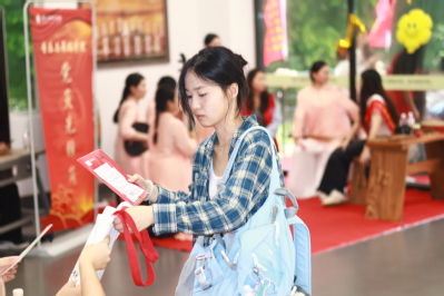 除此之外,学院还为新生们设计了丰富有趣的活动,例如参与抽书签盲盒环节,接收来自学长学姐们的大学学习生活锦囊;在“强国复兴有我,青春挺膺担当”风采墙签字合影,写下对大学四年的憧憬,增强对学院的归属感。