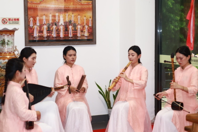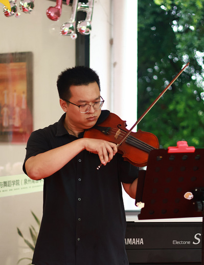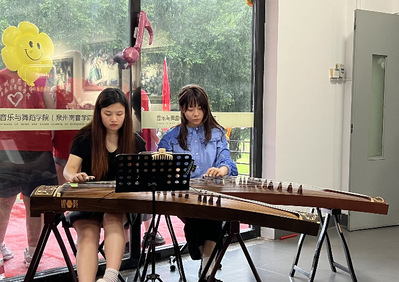 在艺术楼二楼门厅的表演区,分别为研究生同学演奏小提琴,本科南音专业的同学演奏南音经典曲谱,音乐学专业同学表演双排键、古筝等,展示学院办学风采,弘扬中华优秀传统文化。