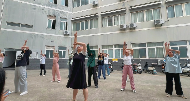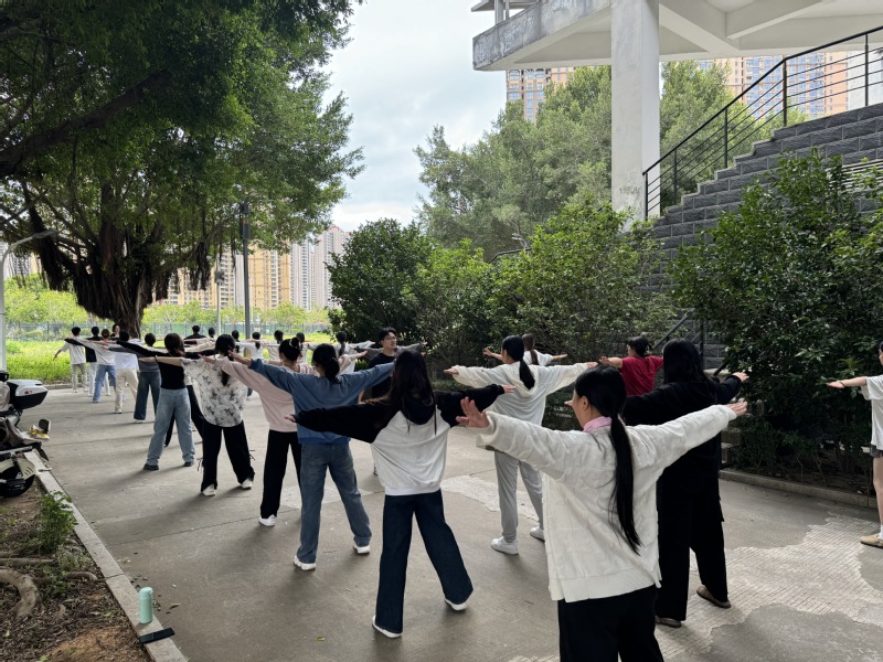 为迎接学校第42届田径运动会的到来,音乐与舞蹈学院组织2024级新生开展广播体操训练活动。