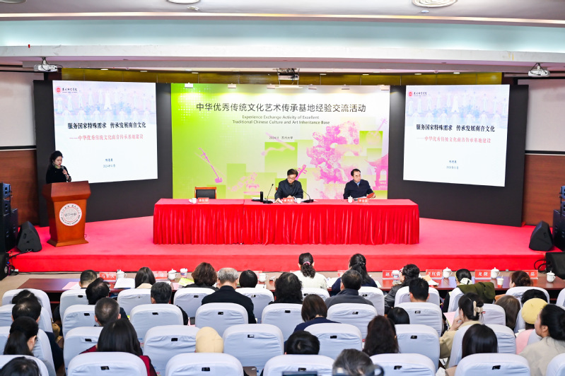 11月6日,教育部中华优秀传统文化艺术传承基地经验交流活动在苏州大学举办,全国106个中华优秀传统文化传承基地负责人齐聚一堂,共同擘画基地未来发展。教育部体卫艺司一级巡视员郝风林,江苏省教育厅二级巡视员李金泉等相关领导出席本次活动。