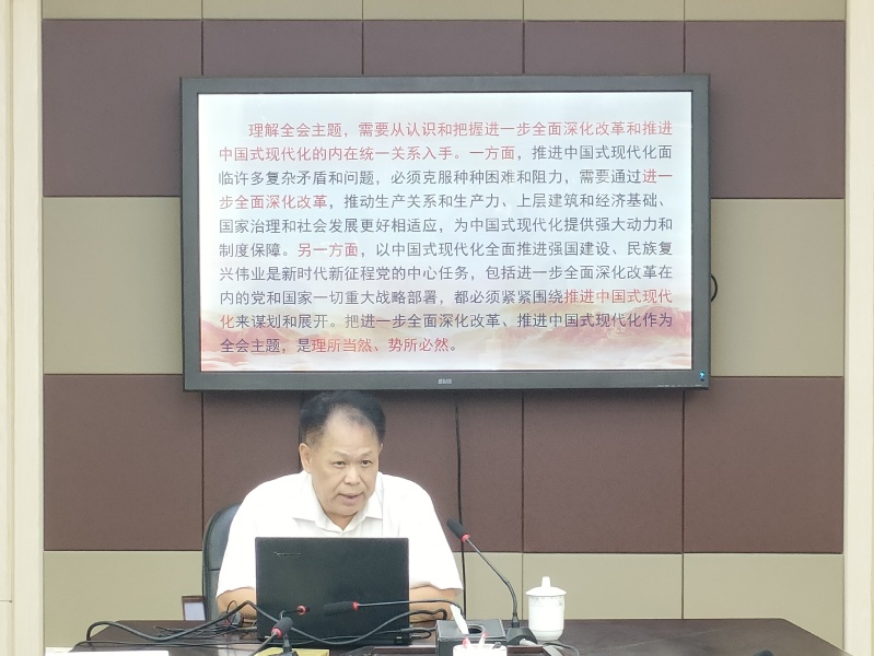 童宝平从深刻领会把握党的二十届三中全会的主题和重大意义,深刻领会把握进一步全面深化改革的重大举措,学习宣传贯彻习近平总书记在福建考察时的重要讲话精神、全力以赴抓好全会精神贯彻落实等三个方面,对党的二十届三中全会精神作了专题辅导。报告主题鲜明、站位高远、视野广阔、内涵丰富,既有政治高度、理论深度,又有学识广度、情感热度,具有很强的思想性和指导性。
