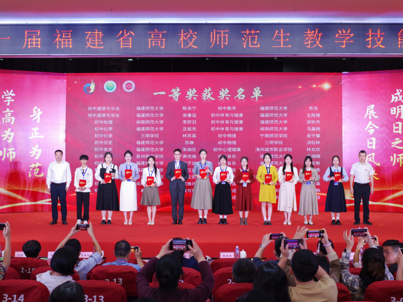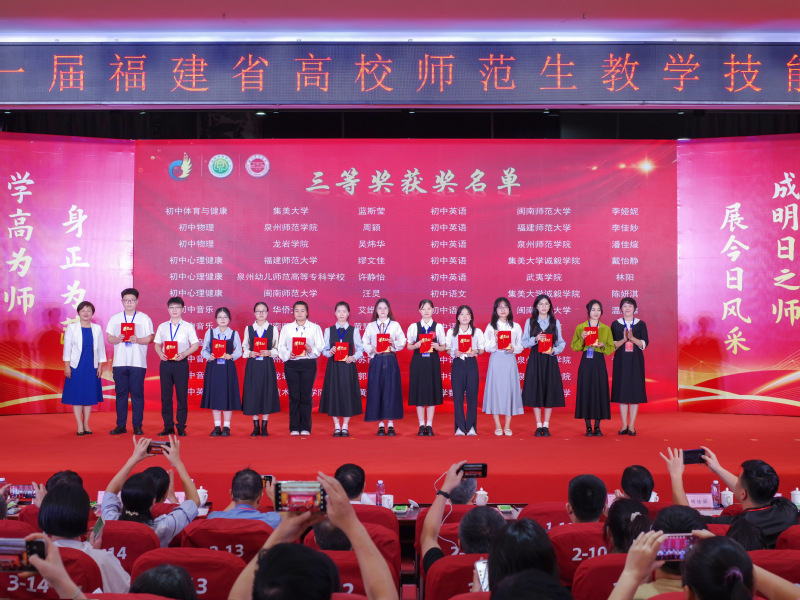 本次大赛以加快建设基础教育改革发展需要的高素质专业化创新型教师队伍,进一步提升福建省高校师范专业学时教学技能水平和就业竞争力为目标,设置包含中学、小学和学前三个参赛学段的16个学科、18个组别,来自全省39所师范生培养院校的232名优秀选手经过层层选拔,会师赛场,通过教学设计、模拟课堂教学、专家提问三个环节展开激烈角逐。沈科秀和苏雨思同学凭借扎实的教学功底和精彩的课堂表现脱颖而出,以出色表现赢得了专家评委的高度肯定,取得佳绩,彰显了我院在师范教育领域的深厚教学底蕴与鲜明特色,充分展现了师范生所应具备的过硬专业素质与昂扬精神风貌。