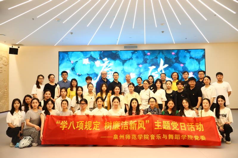 为推动学院深入贯彻中央八项规定精神学习教育走深走实,深化党员廉政教育,6月19日下午,音乐与舞蹈学院党委组织师生党员前往清廉泉州馆,开展“学八项规定,树廉洁新风”主题党日活动。