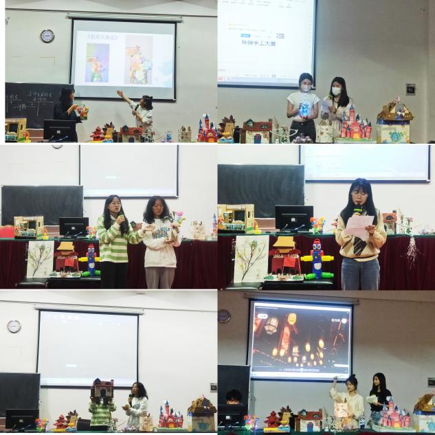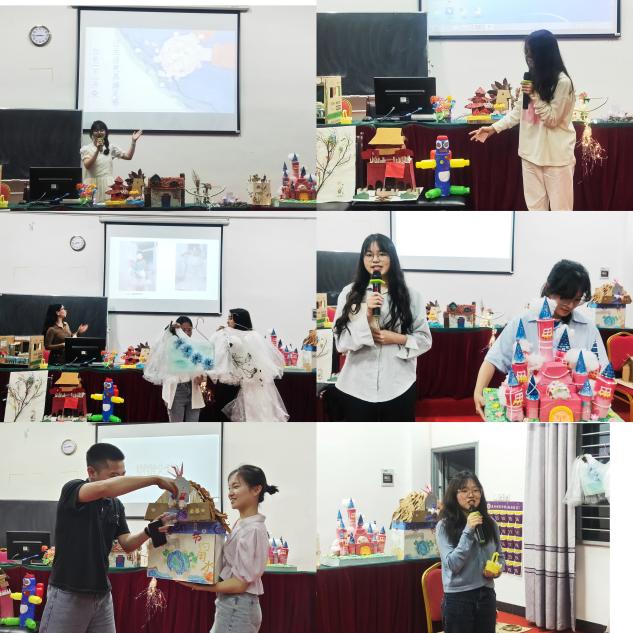 比赛过程中,选手们向评委们和现场观众做了详细的作品介绍,创作灵感有来自诗歌,有来自一本书的读后感,也有来自日常生活的启发。参赛作品取材于自废弃的布艺类、纸质类及校园中的枯枝落叶等日常生活常见的,再通过选手们的奇思妙想与巧手制作而成功展现在我们的眼前。参赛作品主题鲜明,贴近生活,现场讲解风格各异,都体现出了当代青年大学生积极向上的精神风貌。现场评委和观众都感受到变废为宝让我们的生活充满了色彩和细小的惊喜。