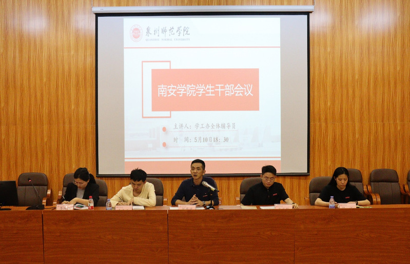 5月10日18:30南安学院在黄仲咸报告厅举行全体学生干部会议,本次会议由学工办全体老师主讲,5位老师分别对学生工作做出详细的要求并分享各自的学生工作心得。参加会议的有各班级三大班干、两委会成员、自律会成员、辅导员助理、党务助理和校卫队等80余名学生干部。