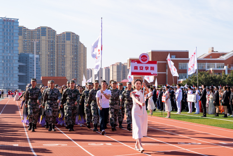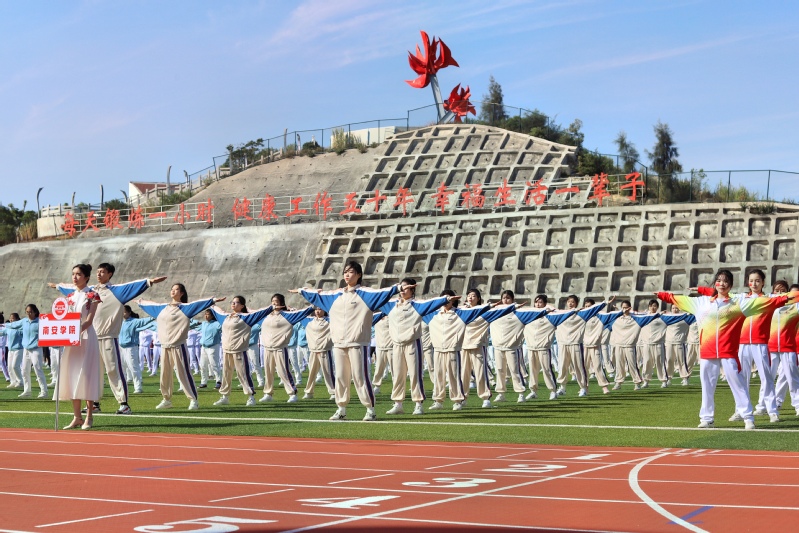 方阵表演中,迷彩戎装与预科班学生异域服饰的碰撞,瞬时吸引大众目光,广播操表演中,南安学子不拘于萧瑟的秋风,肩负青春之责,音乐在跳动,青春在飞扬,热爱可抵岁月漫长。