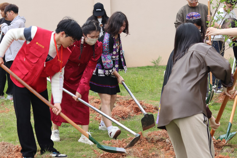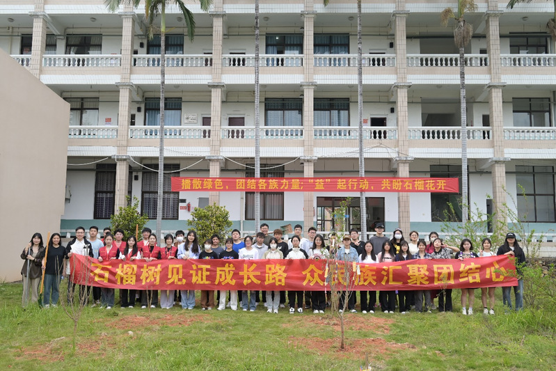 “植”因有你植树活动,各民族学生和教师齐心协力亲手种下石榴树,让更多的绿色生命与我们一同成长、奋斗。岁月悠悠、树枝蓬勃、开花结果、留下的不仅是绿荫满地,更是我们深厚的友谊与不懈奋斗的结晶。