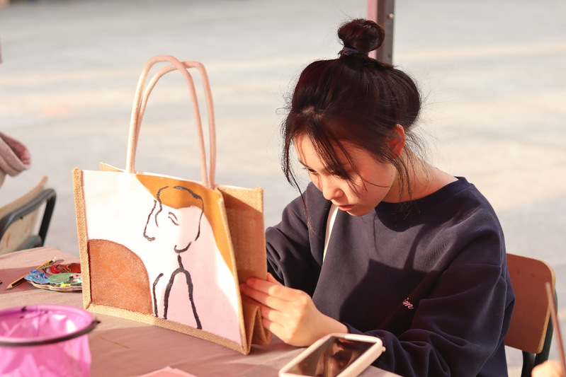 美好“袋”回家活动中,同学们以“绿色环保”为主题,发挥自己的想象力和创造力,用画笔描绘出独具个性的色彩,最终呈现出一幅幅充满活力的绿色作品,创作出了个人定制的环保袋。活动结束后,同学们将循环利用自己绘制的环保袋,传递绿色环保理念给身边的人,为绿色低碳事业贡献自己的一份力量。