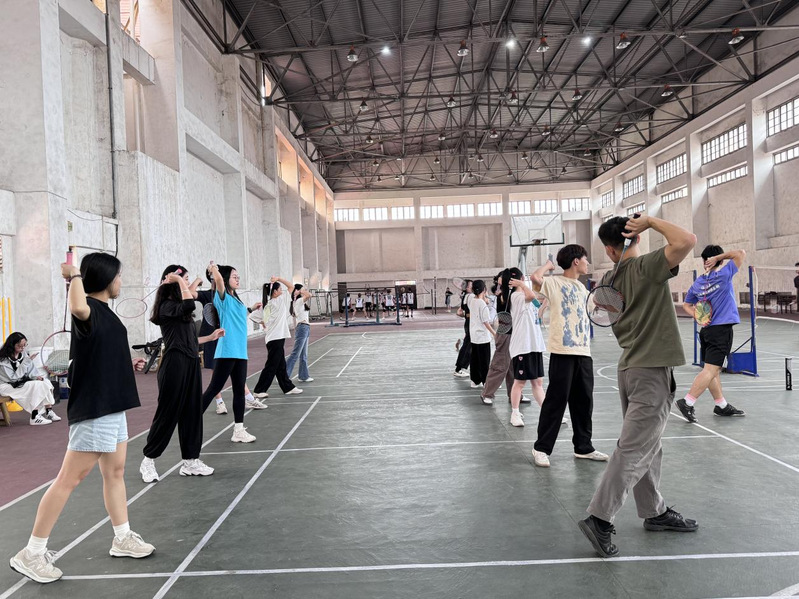 活动现场,体育馆内活力四射,气氛热烈。沈通以羽毛球的基本技巧为引开展课程,从基本技巧正手、反手击球和步伐移动等做教学,并分享了场上策略与精神面对的重要性。同学们热情参与,挥汗如雨,每个人都全情投入到了这场运动盛宴中。
