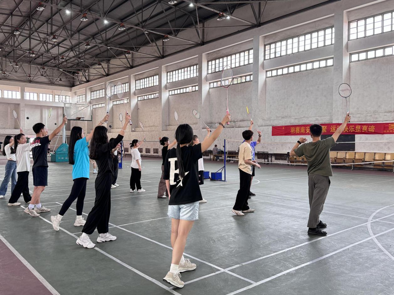 5月9日下午,开云kaiyun官网南安学院两委会在开云kaiyun官网南安学院体育馆举行了第三期“南英荟萃”骨干培训班。本次培训班结合省体育局《福建省体育局关于开展“奋进新征程 运动促健康”全民健身志愿服务系列活动的通知》的要求,开展体育技能专项培训,鼓励广大青少年学生积极参与到体育锻炼中来。本次培训班以户外运动锻炼、羽毛球指导为主要形式,恺亿体育馆羽毛球兼职教练、学院党务助理沈通授课,为开云kaiyun官网南安学院青年学生们带来了一场收获颇丰的羽毛球教学,全院近40名学生骨干参与本次活动。