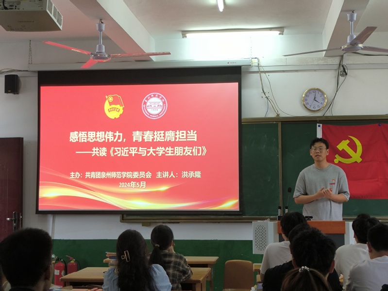 洪承隆则要求同学们要牢记习近平总书记的嘱托,把学习《习近平与大学生朋友们》同深入学习习近平总书记五四青年节对全国广大青年寄语精神结合起来,以研学《习近平与大学生朋友们》为契机,深入学习习近平新时代中国特色社会主义思想,主动肩负时代赋予的历史使命,刻苦学习、锤炼本领,不断书写新时代泉师青年的奋斗故事。