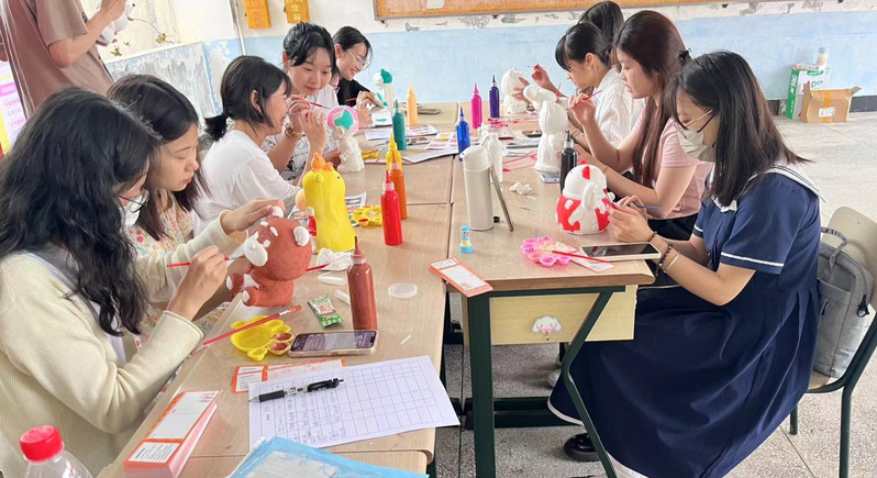 活动伊始,石膏娃娃涂鸦手作区便热闹非凡。同学们纷纷挥动画笔,将色彩与创意注入石膏娃娃之中,创作出一个个别具一格的艺术作品。这一环节不仅锻炼了同学们的动手能力,更让他们感受到了艺术创作的无限可能。