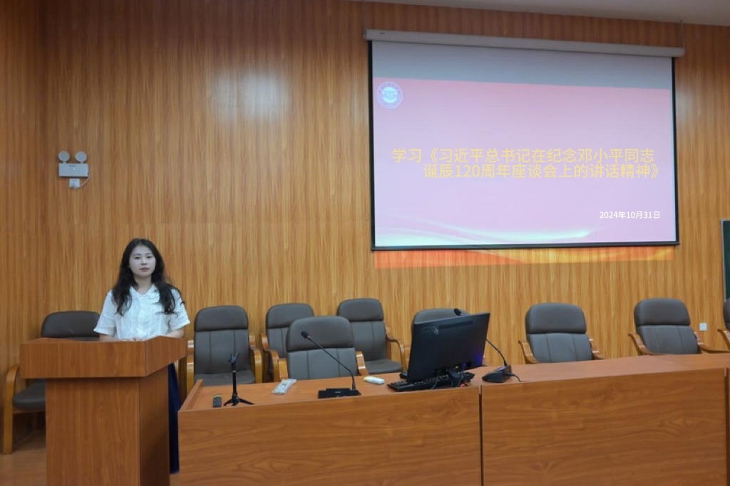 随后,学生会执行主席吴敏分享习近平总书记在纪念邓小平同志诞辰120周年座谈会上的讲话精神的学习心得,她表示学生会成员要始终高举中国特色社会主义伟大旗帜,不忘初心、牢记使命,锐意进取、团结奋斗,以更加饱满的热情和更加严谨的态度,全心全意为同学服务,为学院的发展贡献自己的力量。