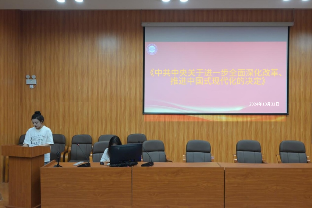 接着,学生团委副书记林妙珊对《中共中央关于进一步全面深化改革、推进中国式现代化的决定》进行深入地解读。改革开放是决定当代中国命运的关键一招,也是推进中国式现代化的强大动力,作为新时代的青年,要勇于担当,敢于创新,为实现中华民族伟大复兴的中国梦贡献自己的力量。