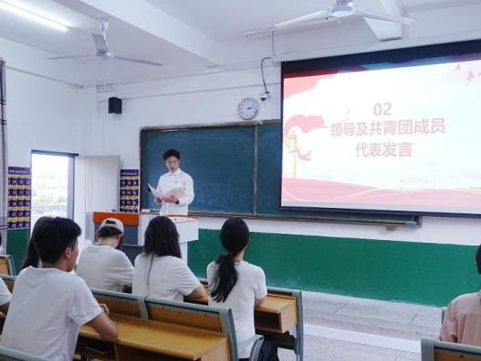 “这份团徽承载着十年成长印记。”拥有十年团龄的陈毅同学通过个人成长故事,展现新时代共青团员的使命担当。24英语2班余海杰作为新团员代表发言。他表示,加入共青团不仅是荣誉,更是责任的开始,将把入团作为人生新起点,以团章为行动指南,在团组织培养下,脚踏实地提升本领,用行动践行入团誓言,在志愿服务和社会实践中展现青春担当。