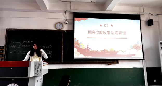 24国际经济与贸易1班与24市场营销1班通过解读我国宗教政策法规,接着进行案例分析讨论,随后开展知识竞赛并奖励优秀同学,同学们还分享心得。最后主持人总结活动,强调学习意义,鼓励抵制非法宗教活动。