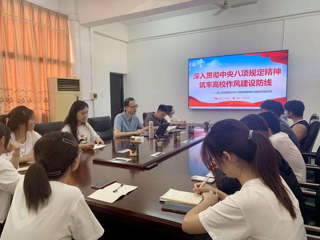 同时,肖文清给大家讲授了关于“新时代新青年”的思政课,以黄文秀、杨科璋等“时代楷模”为例,阐释爱国主义精神与青年使命。最后,他强调全体党员和青年学生要深入贯彻中央八项规定精神,以“青春逢盛世,奋斗正当时”的使命感,厚植爱国情怀,练就过硬本领,挺膺担当作为,为学校建设特色鲜明的一流应用型大学贡献青春力量。