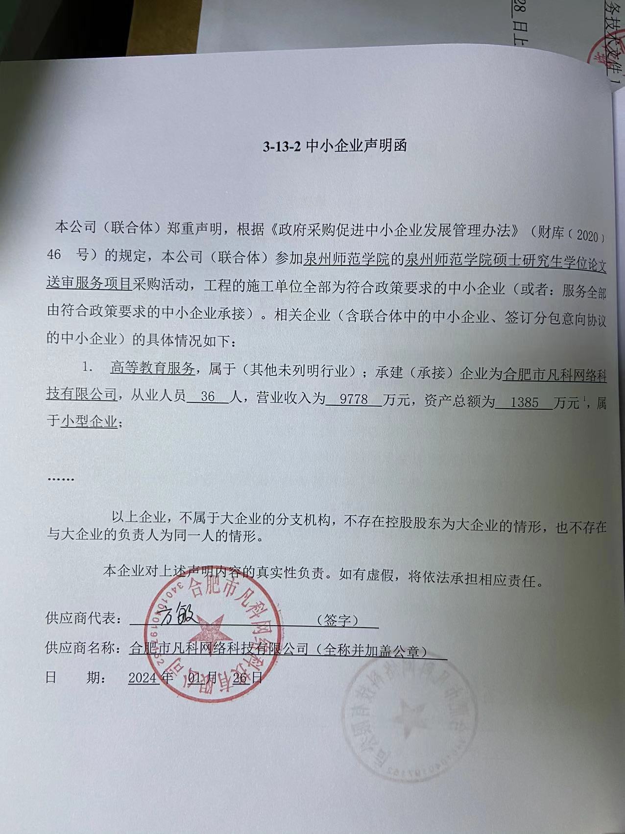 1 | 合肥市凡科网络科技有限公司 | 高等教育服务 | 按竞争性磋商文件及合同要求执行 | 按竞争性磋商文件及合同要求执行 | 按竞争性磋商文件及合同要求执行 | 按竞争性磋商文件及合同要求执行 |