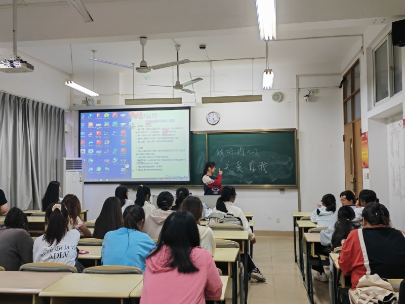 为引导同学们提高认识心理健康的重要性,掌握自我调适的方法。5月13日-5月19日,我院开展“倾听内心,关爱自我”心理健康主题班会。各班心理委员强调每个人都是独立的个体,从大家经常遇到的心理困惑出发,分析压力的来源,介绍压力应对的方法,并分享应对负性情绪的技术,从而帮助大家能随情境的变化调节情绪,养成健康心态。